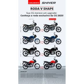 RODA TRASEIRA LIGA LEVE TITAN 150 2004 A 2025 TITAN 160 START 150 160 MODELO V-SHAPE PRETO COM ROLAMENTOS SHIVER Ean: 7908398709426