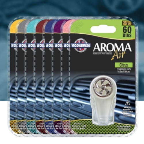Os Aromatizantes Rodabrisa Air foram criados para proporcionar um suave perfume ao interior do seu carro. Seu sistema de fixação nas grades de ventilação é de simples utilização e permite ajustar a intensidade da fragrância e não ocupa espaço no interior do veículo.