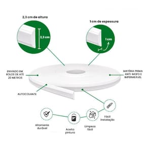 Rodameio boiserie eva autocolante 2,3cm rm61 8 metros meurodapé Solução prática, economica e inovadora para deixar seu ambiente mais bonito, sofistidado e moderno, produzido em borracha e.V.A, material de alta durabilidade, flexivel, ecologico, não apodrece, não pega cupim,pode ser molhado e aceita qualquer tipo de pintura . Podendo ser instaldo como: rodapés, roda tetos, roda meios, boiseries, faixas, molduras ou como sua imaginação quiser Ahhh... Se você gosta do faça você mesmo, vai adorar, pois é de facil instalação, já vem com fita dupla face, sem sujeira, não necessita cantoneiras e pode ser instalado em áreas internas e externas Características gerais do produto: Dimensões axlxp cm : 2,3 x 1,2 x 800 Produzido em: borracha e.V.A Cor acabamento: branco fosco : 3 anos junto ao fabricante Aplicação: externo ou interno Acompanha o produto: 8 metros de rodameio : 3 anos junto ao fabricante Marca: Não Informado