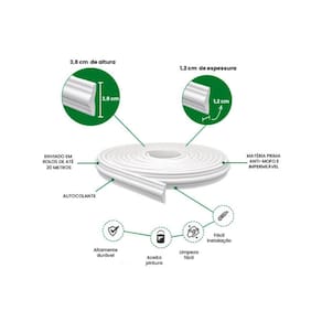 Dimensões axlxp cm : 3,8 x 1,2 x 300 Produzido em: borracha e.V.A Cor acabamento: branco fosco Garantia: 3 anos junto ao fabricante Aplicação: externo ou interno