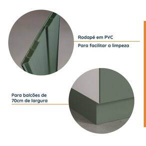 O Rodapé 70cm Ipanema foi desenvolvido para trazer maior proteção contra umidade e prolongar a vida útil do móvel, além de adicionar um toque de elegância ao design. Este produto contempla os rodapés frontal e laterais para ser instalado no Armário Multiuso da linha Ipanema, contudo as presilhas e os pé reguláveis vem acompanhado na compra do módulo a ser instalado. Uma opção prática e funcional para quem busca estilo em sua casa. Acabamento: Pintura Ambiente Principal: Cozinha Complexidade da Montagem: Baixa: pode ser montado por uma pessoa sozinha Cor: Verde Folha Cor do Produto: Verde Folha Escala de Brilho: Fosco Informações Complementares: Não acompanha presilhas e pés reguláveis, estes insumos são adquiridos na compra do balcão a ser instalado. Itens Inclusos: 1 Rodapé Frontal e 2 Rodapés Laterais Linha ou Coleção: Ipanema Manual de Montagem e Instalação: https://product-hub-prd.madeiramadeira.com.br/878966/documents/06d71cae-b903-4dcd-9392-a27b1e950f307442IPN16GMANUALDEMONTAGEM.pdf Material Principal: PVC Necessita Montagem: Sim Origem do Produto: Nacional Peso: 0,62 kg Recomendações de Uso, Manutenção e Limpeza: Use um pano levemente umedecido com água, seguido de pano seco. Não utilize produtos químicos ou abrasivos. Sistema de Montagem: Presilhas e pés reguláveis.
