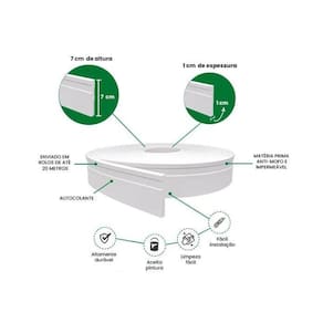 Rodapé de EVA Autocolante RP16 7cm Branco 2,5 Metros - Se você busca o que há de mais moderno, prático e inovador na decoração, Conheça a Meu RodapéNÚMERO 1 do Brasil em vendas de rodapés, roda meios e roda tetos autocolantes.- Instalação fácil, rápida e sem sujeira você mesmo pode instalar - Suporte para instalação via vídeos no Youtube- Aceita pintura tintas à base de água ou solvente - Fácil de limpar apenas pano molhado + detergente ou outras soluções de higienização - Material lavável e à prova de água- Não apodrece e não pega cupim- Não necessita de cantoneiras- Pode ser usados em áreas internas, externas e banheiros- 3 anos de Garantia não cobrindo a colagem do produto. A instalação precisa ser feita em local seco, não muito áspero e livre de poeira. Em alguns casos pode precisar de reforço com cola de contato .Os produtos Meu Rodapé oferecem soluções práticas e com economia para você deixar seu ambiente mais bonito e sofisticado.São feitos de borracha E.V.A , material ecologicamente correto e de alta durabilidade, podem ser molhados, não apodrecem e não pega cupim.Todos osprodutos são flexíveis e vem em rolo, o que facilita a instalação e diminui o número de emendas.Recomendamos comprar 5% a mais da metragem calculada para o seu projeto. Assim você evita a falta de material no caso de pequenas perdas no momento dos cortes e acabamentos.Características Gerais do Produto: Marca: Meu Rodapé Cor: Branco Material: E.V.A Altura cm : 7cm Comprimento: 2,5m Largura cm : 1cm Garantia: 3 Anos Fabricante Acompanha o produto: 1 Rolo Rodapé com 2,5 MetrosGarantia: 3 Anos Fabricante Marca: Meu Rodapé
