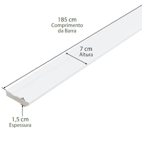 • Ambientes que já tenham focos de cupim devem ser tratados antes da instalação, principalmente quando o foco de cupim estiver no solo. Acompanha Ficha Técnica: Não Altura: 7 Ambiente Principal: Quarto Ambientes Recomendados: Área Comercial/Área Residencial Certificado: FSC Complexidade da instalação: Média:pode ser montado por mais de uma pessoa e/ou necessite de maior conhecimento para montagem Comprimento: 185 Cor: Branco Cor do Produto: Branco Cor Predominante: Branco Espessura: 1.5 Imune a cupim: Não Indicações de Uso: Produto indicado para ambientes internos. Informações Complementares: Ideal para ambientes internos. Itens Inclusos: 1 Barra de Rodapé Linha ou Coleção: Revestido Manual de Montagem e Instalação: https://product-hub-prd.madeiramadeira.com.br/874969/documents/7a948501-71b1-4d72-bfc4-608a07cb854edo7cmx15cmx185cmcasablanca.pdf Material Principal: MDF Origem do Produto: Nacional Peso: 1,656 kg/m Possui friso: Sim Possui passa-fio: Não Recomendações de Uso, Manutenção e Limpeza: O produto não é indicado para exposição direta ao sol. Sua limpeza deverá ser feita com pano úmido e detergente neutro. Resistência à Água: Não Resistência a umidade: Não Resistência ao Fogo: Não Tamanho: 7cmx1,5cmx185cm Tipo de Instalação: Colado Uso Indicado: Interno
