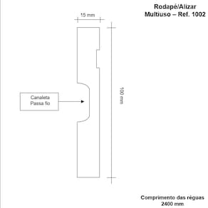 Rodapé revestido com melamina de alta resistência pronto para instalação, não necessita pintura. O Rodapé é desenvolvido em um material ecologicamente responsável e tecnicamente eficiente. O MDF é um padrão internacional de qualidade em ecologia e sustentabilidade, com inúmeras vantagens de aplicação.sem empenamento, mostra-se um material que entrega um Rodapé final de excelência. Não descolore, tonalidade do produto não se altera, devido o revestimento melaminico ser composto de vernizes de alta resistência a riscos, pigmentos e resinas de alta qualidade, o que garante um produto de sem oscilação de cor, independente do ambiente onde se encontra. Acabamento: Liso Acompanha Ficha Técnica: Sim Altura: 10 Ambiente Principal: Sala de Estar Ambientes Recomendados: Área Comercial/Área Residencial Complexidade da instalação: Baixa:pode ser montado por uma pessoa sozinha Composição: MDF/Melamínico Comprimento: 240 Cor: Castanho Cor do Produto: Castanho Cor Predominante: Bege Escala de Brilho: Semi-Brilho Espessura: 15 Imune a cupim: Não Indicações de Uso: Madeira, Vinílico e Cerâmico Itens Inclusos: Réguas Rodapé 240cmx10cmx15mm Linha ou Coleção: TRADICIONAL Manual de Montagem e Instalação: https://product-hub-prd.madeiramadeira.com.br/moldufama%20new.pdf/documents/moldufama%20new.pdf Marca: Moldufama Material Principal: MDF Origem do Produto: Nacional Peso: 0.853 Possui friso: Sim Possui passa-fio: Sim Recomendações de Uso, Manutenção e Limpeza: Para limpeza, utilize pano úmido com álcool ou querosene. Resistência à Água: Não Resistência a umidade: Não Resistência ao Fogo: Sim Tamanho: 10cm x 15mm x 2,40m Tipo de Instalação: Colado Uso Indicado: Interno