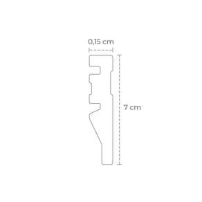 É altamente resistente à água e seu design permite ocultar fios e cabos. Acabamento: Liso Acompanha Ficha Técnica: Não Altura: 7 cm Ambiente Principal: Sala de Estar Ambientes Recomendados: Área Comercial/Área Residencial Complexidade da instalação: Média:pode ser montado por mais de uma pessoa e/ou necessite de maior conhecimento para montagem Comprimento: 240 cm Cor: Branco Cor do Produto: Branco Cor Predominante: Branco Escala de Brilho: Semi-Fosco Espessura: 15 mm Imune a cupim: Sim Indicações de Uso: Pisos Vinilicos, cerâmicos, laminados e carpetes Itens Inclusos: não Linha ou Coleção: NFR Manual de Montagem e Instalação: https://product-hub-prd.madeiramadeira.com.br/862729/documents/392083ba-5151-4345-ac89-e61bb2d22cbc1172723ruffinorodapes.pdf Material Principal: Poliestireno Origem do Produto: Importado Peso: 0,53 kg/m Possui friso: Sim Possui passa-fio: Sim Recomendações de Uso, Manutenção e Limpeza: Pano úmido e detergente neutro Resistência à Água: Sim Resistência a umidade: Sim Resistência ao Fogo: Não Tamanho: 2,40m x 15mm x07cm Tipo de Instalação: Colado Uso Indicado: Interno Ean: 7898657652733