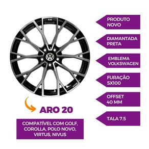 Rodas Aro 20 Furação 5X100 Golf Corolla Polo Novo