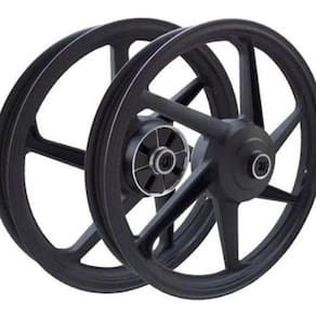 Rodas fabricadas com matéria prima nobre, construídas em sistema de injeção de alumínio de alta tecnologia, o que proporciona além de muita leveza, um ótimo acabamento, altíssima qualidade e resistência. Com exclusivo design, e uma embalagem inédita, as nossas rodas de liga leve chegaram para revolucionar o mercado. Garante beleza e estabilidade para sua moto.