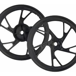 Rodas liga leve pe de galinha titan fan 150 ex 160 (par) Par de rodas liga leve honda titan 150 ex modelo original 5 palitos Medidas das rodas: dianteira 18x160 e traseira 18x185 Pode ser utilizado pneu com ou sem camara. As rodas e as outras peças que vendemos são novas e com 3 meses de garantia contra defeito de fabricação. Incluso rolamento e espaçador 1 roda dianteira + 1 roda traseira Aplicável em motos: - titan 150 - 2014 até 2016 - titan 160 - 2016 - fan 150 - 2014 até 2018 - fan 160 - 2016 até 2018 Qualidades: Rodas fabricadas com matéria prima nobre, construídas em sistema de injeção de alumínio de alta tecnologia, o que proporciona além de muita leveza, um ótimo acabamento, altíssima qualidade e resistência. Com exclusivo design, e uma embalagem inédita, as nossas rodas de liga leve chegaram para revolucionar o mercado. Garante beleza e estabilidade para sua moto.