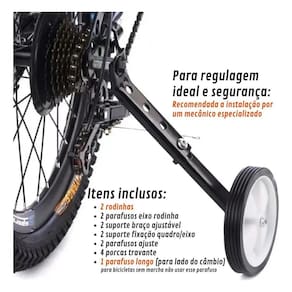 Apresentamos a você a Roda Lateral Câmbio Marchas Reforçada Aro 16 à 24: a escolha profissional para pais e mães que desejam proporcionar uma experiência excepcional aos seus filhos no processo de aprendizado de andar de bicicleta.