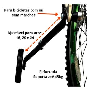 Principais destaques: - Design seguro e confiável para facilitar o aprendizado da bicicleta - Compatível com aros de 16 a 24 polegadas e bicicletas com câmbio - Composição de plástico e aço de alta qualidade para durabilidade e resistência excepcionais - Estrutura em aço reforçada para máxima estabilidade e segurança - Facilidade de regulagem e diferentes níveis de altura para uma experiência personalizada - Montagem simples e descomplicada - Suporta até 45kg, adequada para uso prolongado - Uma oportunidade única para criar memórias inesquecíveis e fortalecer os laços familiares. Marca: Não Informado