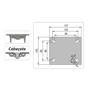 Este rodízio tem capacidade máxima de 375kg, possui roda de 4 polegadas de diâmetro e largura de banda de 2 polegadas. O comprimento do cubo é de 62mm e o raio de giro é de 81mm. A altura total do rodízio é de 144mm.