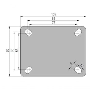 Rodizio giratório 3 polegada em aço inox 304 com placa 105x80.Aconselhável para utilização que requer resistência a temperaturas até 230C.