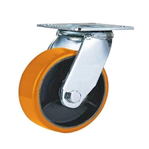 Rodizio Carga Pesada Giratório 5 Pol. S/ Freio 400 Kg Rodizio industrial 5 polegadas com rodas de ferro fundido revestida com poliuretano amarelo, resistente a abrasão, ideal para pisos liso ou áspero, movimentação cargas pesadas e levem macia fácil manobra, pois, conta com duplo rolamento de esfera, garfo com sistema de graxeira o que auxilia na manutenção do rodizio.Garfo: aço carbono 5 mm, com graxeira.Roda: fabricada com poliuretano de alta qualidade com o núcleo em ferro fundido, com duplo rolamento de esfera nas extremidadesCaracterísticas técnicas:Diâmetro da roda (pol): 5 Polegadas - 125 mmPlaca giratória: 110 X 130 MMCom freio: nãoLargura da banda da roda : 2 polegadas 50 mmComprimento do cubo (mm): 60 mmAltura total (mm): 164 mmCapacidade de carga (kg): 400 kgDureza: 95 shoreMaterial: PU - PoliuretanoTemperatura de trabalho: -20 a 70Cor: AmareloIndicado: concreto liso, asfáltico, metálico, cerâmica, madeira, proteção piso, tração manual.