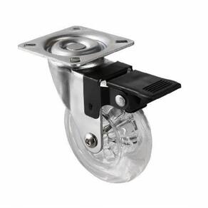 Rodizio de silicone 50mm c/freio giratório - hardt Características: - Sua aplicação se estende aos mais diversos tipos de mobiliários como, por exemplo, gaveteiros, mesas, cadeiras, estantes, racks e camas conferindo um estilo próprio a qualquer projeto. - É um produto de fácil instalação, tendo como principal ponto de atenção o correto dimensionamento da carga que cada rodízio pode suportar, evitando assim seu mal funcionamento e, consequentemente, a diminuição da vida útil do produto e danos ao mobiliário. - Produzidos em PU. - Acabamento: cromado/incolor - Capacidade de carga 40KG. -tamanho: 50mm - Placa giratória, com freio.