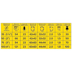 Super resistente o rodízio da Fertak oferece capacidade de carga além de elevada resistência a impactos e ótimo desempenho. Conta com roda em poliuretano de alta qualidade, placa em aço com maior resistência a corrosão e oxidação, eixo giratório, trava da roda e o melhor, é super fácil de instalar, basta fixá-lo ao equipamento ou móvel desejado, dispensando a necessidade de montar o rodízio.