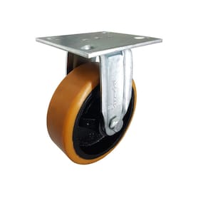 O Rodízio Fixo é ideal para cargas médias e moderadas com tração manual. Construído em chapa de aço estampado e zincado, conta com uma placa de fixação robusta.