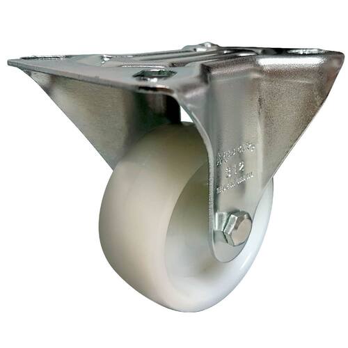 - Ferragem: Rodízio fixo, linha leve, construído em chapa de aço estampado e zincado com placa de fixação. Indicado para aplicações de cargas leves e moderadas com tração manual.