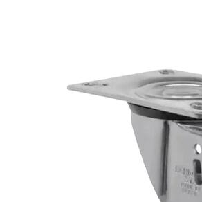 Rodizio giratório fabricado em chapa estampada e cabeçote com dupla pista de esferas, proporcionando resistência e durabilidade, com acabamento zincado.