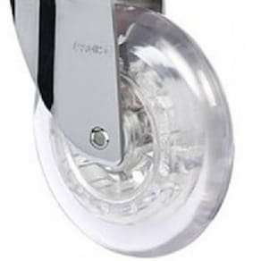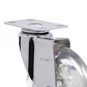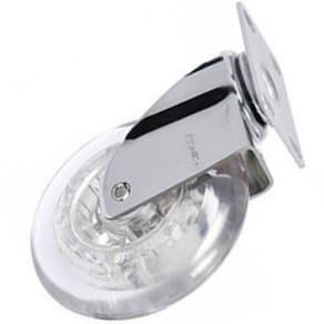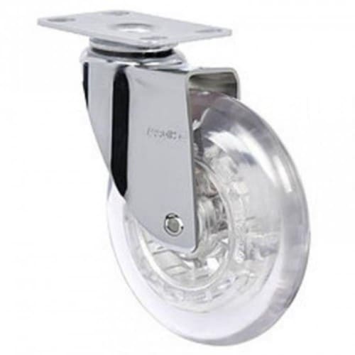 Rodizio giratório fabricado em chapa estampada proporcionando resistência e durabilidade, cabeçote com uma pista de esferas e acabamento zincado. Apresenta boa resistência química, impactos moderados e também não risca ou danifica o piso. Possui eixo da roda rebitado e injetadas com revestimento em poliuretano termoplástico e núcleo em acrílico com várias combinações de cores, rodam com facilidade requerendo pouco esforço para movimentação e não deformam sob carga estática, ideal para móveis.