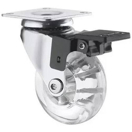 Garfo fabricado em chapa estampada e cabeçote com uma pista de , acabamento cromado. Eixo da roda rebitado, roda colorgel, composto termoplástico com pvc transparente. Dureza: 90 shore a 10ºc a +50ºc injetada com revestimento em composto termoplástico com pvc transparente em diversas cores e núcleo em acrílico. Ideal para móveis, gira com muita facilidade, requerendo pouco esforço para movimentação. Não deforma sob carga estática, apresenta boa resistência química e a impactos moderados. Produzida com material reciclável Rodízio giratório com freio Fixação placa quadrada 4 furos medidas 42 x 42 mm entre furos 32 x 32 mm Altura rodízio 65 mm Capacidade carga por rodízio 40 kgs Eixo furo passante sem rolamento Freio pedal acionamento simples trava somente a roda 3 meses defeito fabricação Marca: Não Informado Ean: 7897486556939