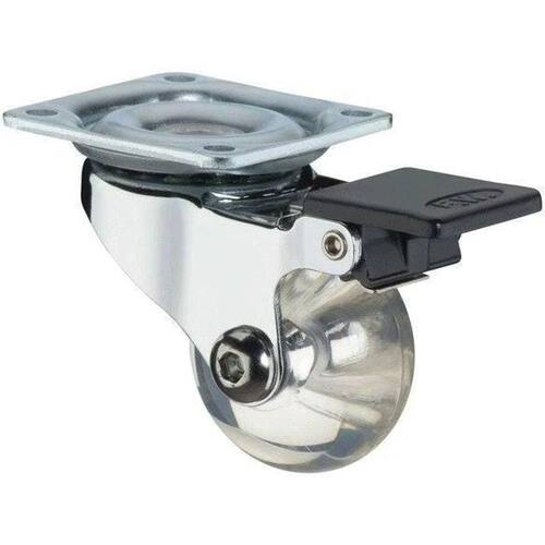 Garfo fabricado em chapa estampada e cabeçote com uma pista de , acabamento cromado. Eixo da roda rebitado roda colorgel, composto termoplástico com pvc transparente. Dureza: 90 shore a. -10ºc a +50ºc injetada com revestimento em composto termoplástico com pvc transparente em diversas cores e núcleo em acrílico. Ideal para móveis, gira com muita facilidade, requerendo pouco esforço para movimentação. Não deforma sob carga estática, apresenta boa resistência química e a impactos moderados. Produzida com material reciclável Rodízio giratório Fixação placa quadrada 4 furos medidas 42 x 42 mm entre furos 32 x 32 mm Altura rodízio 48 mm Capacidade carga por rodízio 30 kgs Eixo furo passante sem rolamento Freio pedal acionamento simples trava somente a roda 3 meses defeito fabricação Marca: Não Informado