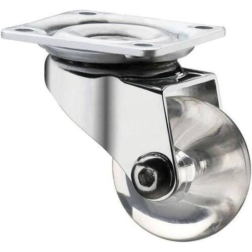 Garfo fabricado em chapa estampada e cabeçote com uma pista de , acabamento cromado. Eixo da roda rebitado roda colorgel, composto termoplástico com pvc transparente. Dureza: 90 shore a. -10ºc a +50ºc injetada com revestimento em composto termoplástico com pvc transparente em diversas cores e núcleo em acrílico. Ideal para móveis, gira com muita facilidade, requerendo pouco esforço para movimentação. Não deforma sob carga estática, apresenta boa resistência química e a impactos moderados. Produzida com material reciclável rodízio giratório fixação placa quadrada 4 furos medidas 42 x 42 mm entre furos 32 x 32 mm altura rodízio 48 mm capacidade carga por rodízio 30 kgs eixo furo passante sem rolamento garantia 3 meses defeito fabricação Marca: Movifacil