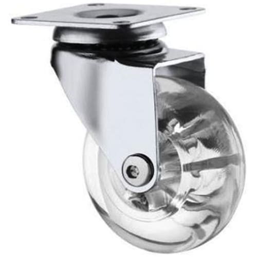 Garfo fabricado em chapa estampada e cabeçote com uma pista de , acabamento cromado. Eixo da roda rebitado, roda colorgel, composto termoplástico com pvc transparente. Dureza: 90 shore a 10ºc a +50ºc injetada com revestimento em composto termoplástico com pvc transparente em diversas cores e núcleo em acrílico. Ideal para móveis, gira com muita facilidade, requerendo pouco esforço para movimentação. Não deforma sob carga estática, apresenta boa resistência química e a impactos moderados. Produzida com material reciclável Rodízio giratório Fixação placa quadrada 4 furos medidas 42 x 42 mm entre furos 32 x 32 mm Altura rodízio 65 mm Capacidade carga por rodízio 40 kgs Eixo furo passante sem rolamento 3 meses defeito fabricação Marca: Não Informado Ean: 7897486556748