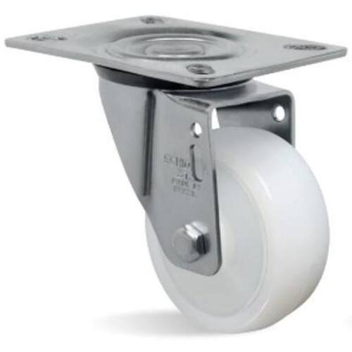 Rodizio giratório nylon 10cm 170kg gl 412 ntt - schioppa - Roda ntt - nylon técnico. Dureza: 75 shore d. -40ºc a +110ºc . Produzida em injeção única com poliamida 6 nylon de alta qualidade. É leve, possui ótima resistência mecânica, roda com muita facilidade exigindo menor esforço para manobras e movimentação, não deforma sob carga estática. Ideal para aplicações em ambientes úmidos é resistente a graxas, óleos, sais e alguns tipos de ácidos. Fabricada com material reciclável. A velocidade de trabalho indicada é até 4 km/h. Peso suportado: 170 kg Características gerais do produto: Tamanho: 10 x 3,2 x 10 350g : 3 meses Marca: Não Informado