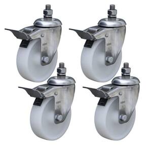 Rodízio Inox 5 Polegadas 170kg Com Freio Furo Passante Resistente à corrosão, ambientes úmidos e a produtos químicos, o que prolonga a vida útil do produto.AplicaçãoRodízio de cargas leves para frigoríficos, indústrias químicas, de alimentos em geral e hospitais.ComposiçãoRoda:Em nylon 100% (poliamida 6), e furo passante 5/16. Dureza 75 Shore D (-30C a 100C).Garfo:Em aço inox AISI 304 com dupla pista de esferas.GLEIF 512 NY FPCapacidade de carga: 170kgModelo: FreioDiâmetro da roda: 5polLargura da banda da roda: 1.1/4polComprimento do cubo: 38mmTipo de rodagem: Furo PassanteRaio de giro do rodízio: 93mmAltura total: 160mmParafuso do eixo: 5/16pol