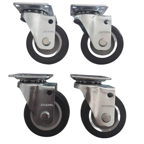 Garfo fabricado em chapa estampada e cabeçote com dupla pista de , acabamento zincado. Eixo da roda rebitado, roda 50 mm bp composto termoplástico com pvc. Dureza: 85 shore a. -10ºc a +50ºc . Produzidas com revestimento em composto termoplástico com pvc e núcleo em polipropileno copolímero recicláveis. Proporcionam rodagem silenciosa, ótima proteção ao piso, excelente resistência química, boa resistência ao desgaste e aos impactos, resultando em ótima relação custo/benefício. A velocidade de trabalho indicada é até 4km/h 4 rodizios giratórios fixação placa quadrada 4 furos medidas 42 x 42 mm entre furos 32 x 32 mm altura rodízio 65 mm capacidade carga por rodízio 40 kgs eixo furo passante sem rolamento garantia 3 meses defeito fabricação Marca: Movifacil
