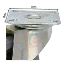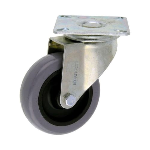 CARACTERÍSTICAS TÉCNICAS: Material: Aço carbono e PVC Medidas: 125mm - 5 diâmetro em plástico PVC Medidas base: 8cm x 8cm Placa com 4 furos Capacidade de carga 70kg Marca: Starfer Ref.: 12026161 Marca: Não Informado