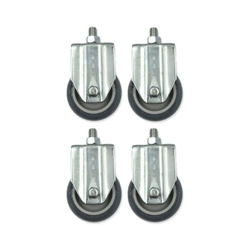 O Rodízio FLE 312 BPE é fabricado em chapa estampada e cabeçote com dupla pista de esferas, acabamento zincado. Espiga de 1/2". Eixo da roda parafusado.