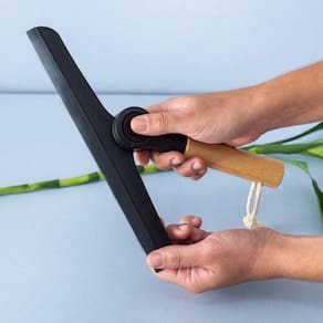Esse é o rodo de pia dobrável com cabo de bambu da OIKOS. Prático: ótimo para retirar o excesso de água de pias e vidros. Dobrável: alcança lugares difíceis de limpar e economiza espaço na bancada ou dentro do armário. Extremidade de silicone: para retirar o excesso de água de pias e vidros. Botão central: aperte para ajustar o ângulo do limpador como você quiser. Design ergonômico: a alça é confortável de segurar, protege suas mãos e dá suporte. Furo passante: na hora de guardar, é só pendurar. Feita de bambu: material leve, resistente e ecologicamente correto.