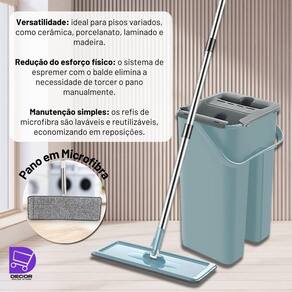 Adquira já o seu e tenha a experiência de limpeza que você merece.Experimente o conjunto prático e eficiente de rodo e balde Flat Mop! Com um design inovador e materiais de alta qualidade, garantimos que a limpeza dos seus pisos será mais fácil e eficaz.
