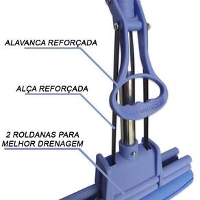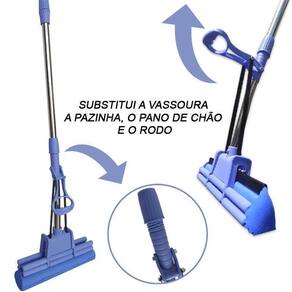 nunca puxe a alavanca do rodo com o refil absorvente seco, sempre utilize ele úmido. Para poder usar o rodo mágico pela primeira vez você precisa molhar bastante o refil na torneira ou em um balde com água, ao mesmo tempo aperte com a mão para amolecer o refil pela primeira vez, pois somente com o refil úmido você pode utilizar a alavanca e assim os roletes vão tirar o excesso de água. Sempre mantenha o refil úmido para espremer utilizando a alavanca, caso o refil seque totalmente refaça o procedimento de enxaguar com bastante água o refil e espremer com a mão, até que ele fique úmido. Para ter mais durabilidade em seu rodo mágico, evite utilizar produtos químicos muito agressivos como cloro e água sanitária. Evite utilizar o rodo no piso áspero, assim podendo ter muito mais durabilidade. Se a caso utilizar produtos químicos, utilize produtos leves com mistura de 15% a 20% na água, na limpeza com o rodo. Após o uso do rodo mágico absorvente, enxague bem o refil podendo assim retirar o máximo de produto químico. Troque o refil somente quando estiver danificado. O rodo mágico é famoso pois é muito prático para utilizar e leve para guardar. Pano de chão nunca mais chega de sofrer e ficar lavando panos e enrolando nos cabos. Quer limpar e organizar sua casa mais fácil e rápido. Adquira agora seu rodo mágico. Dimensões do produto: