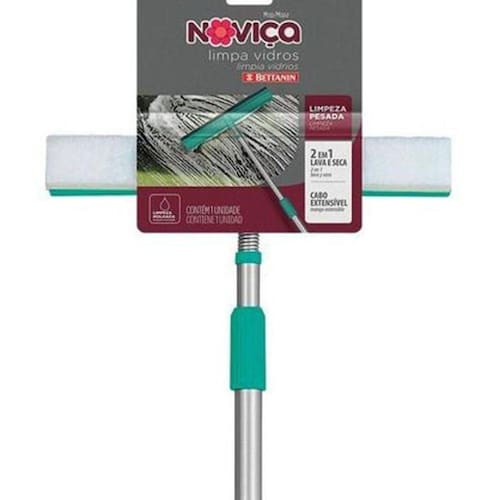 Rodo Mop Limpa Vidros Noviça 2 Em 1 Limpa E Seca Com Cabo Mop 2 em 1: lava e seca. Com cuidado e praticidade, protege suas mãos de produtos químicos e alcança os cantos mais difíceis, devido ao seu cabo extensor e à sua flexibilidade. A manta de limpeza profunda lava e o rodo permite que você finalize a limpeza com a secagem dos vidros. Especificações: Material da estrutura: plástico e alumínio 2 em 1: manta de limpeza profunda + rodo em borracha Aplicaçao: todos os tipos de vidros planos Cabo extensor 59 cm a 1,18m Haste flexível Dimensões: 118cm x 25cm x 5cm Itens inclusos: 01 mop limpa vidros