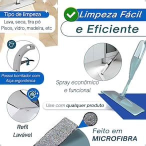 Tecnologia de Spray Integrado: Controle a aplicação de água ou produto de limpeza com um simples toque no gatilho, garantindo economia e evitando excesso de umidade. Alcance Total com Giro 360°: Limpe facilmente embaixo de móveis, cantos e rodapés sem precisar se abaixar ou fazer esforço extra. Ideal para Diversos Pisos: Indicado para porcelanato, madeira, laminado e pisos frios, garantindo um acabamento impecável sem danificar a superfície.