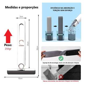 O destaque desse produto é o seu sistema de torção inteligente, que permite recolher o rodo de absorção com apenas uma mão, sem esforço algum. Além disso, o mesmo movimento de recolhimento também faz a torção do rodo, eliminando todo o líquido. Com isso, você economiza tempo e esforço na hora da limpeza.