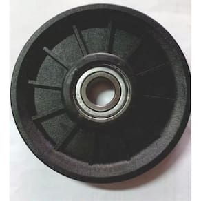Roldana para reparo de equipamentos em academias acompanham rolamento, buchas, parafuso e porca aplicação: trilhos redondos e cabos de aço material: polipropileno circunferência: 130mm cor: preta acompanham 2 buchas de encaixe, rolamento, parafuso e porca