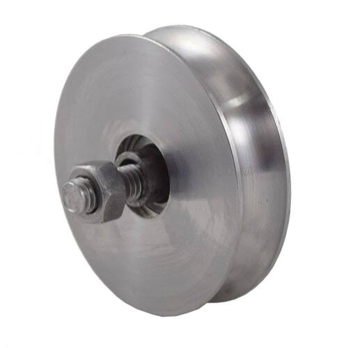 Roldana de aço Canal U e V, 2 e 1/2" desenvolvidas para trilhos e para cabos de aços são construídas para diminuir o atrito! Também podem ter outras aplicações como: guia do cabo de aço no portão basculante e portões deslizantes Parafuso e porca inclusos