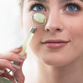O rolo de jade é uma ferramenta para a pele que esfria, aperta e esvazia o rosto em questão de segundos durante a massagem. Ele pode remover imediatamente a tensão muscular, pois o rolo suaviza as linhas finas e elimina as rugas. Reduz o inchaço dos olhos escuros, melhora a pele e a saúde por meio de pedras is de jade sem produtos químicos ou irritantes. Além disso, promove a circulação sanguínea e melhora a drenagem linfática. Depois de usar por alguns dias, seu rosto ficará menos inchado, você sentirá menos tensão e ficará mais apertado. O rolo de jade é conhecido como uma antiga ferramenta antienvelhecimento na China que pode tornar a pele do rosto mais lisa e parecer mais jovem. Elimina a tensão muscular\ nLinha macia\ nProduto l\ NTorna a pele do rosto mais macia e parece mais jovem\ nMaterial: xiuyan jadeCor: verde\ nDimensões: 14 cm x 5 cm x 2 cm