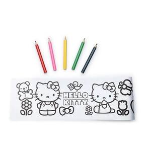 Rolo adesivo para pintura hello kitty com rolo de 1 metro e 5 lápis Ficha técnica: 1 rolo adesivo de 1,10m x 10cm 5 lápis de cor mini Composição lápis: madeira pigmento cera; Composição adesivo em rolo: papel cola removível pva água, cargas inertes, pigmentos, aditivos Possui certificado inmetro