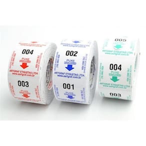 Apresentam senhas de 3 dígitos duas sequência de 001 a 999, totalizando 2.000 senhas por rolo . Utilizadas em Dispensador de Senhas Bico de Pato Origem Nacional