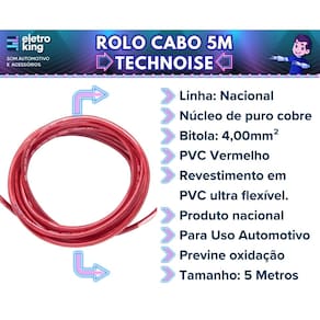 Rolo Cabo Technoise Nacional 4.00mm - (5 Metros Vermelho)