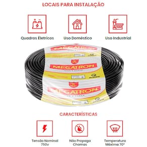 Aplicações VersáteisProjetado para instalações internas e fixas, o cabo Megatron 6mm² é indicado para:
