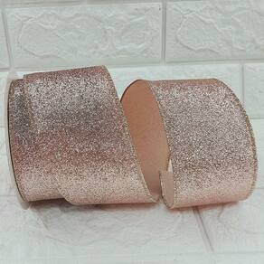 Rolo Fita Aramada Enfeite Natal Rose Gold 6,3cm 9m Kit 4pçs -