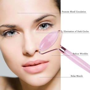 O smart massageador rolo de massagem de quartzo rosa ajuda a ativar a circulação, melhoram a fluidez de energia entre as células do rosto e promovem uma drenagem dos líquidos linfáticos. Tudo isso resulta em uma pele mais descansada e menos inchada, principalmente na região dos olhos.