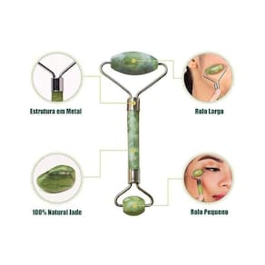O rolinho de jade é uma ferramente anti-idade poderosíssima, pois foi descoberto há milênios que a pedra jade tem esse poder de cura, também desinflama, desincha a pele e ainda tira o aspecto de cansada, mas como Massageando a face com os rolinhos, do centro do pescoço até a raiz do cabelo, basta massagear e pronto. Esse exercício tonifica a pele, dá um gás na circulação, melhora a elasticidade, ativa as células, resultando em muito mais viço e uma pele renovada