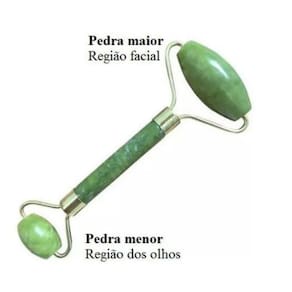 Rolo massageador facial pedra jade anti rugas - glo roller Massageador facial pedra jade é adorada pelas pessoas do oriente, é cheia de significados e propriedades, sendo utilizada há milênios pelos povos orientais. São muitas as propriedades da pedra jade, sendo que a mais comum é que sua utilização melhora a existência da pessoa, equilibrando as energias e os chacras, além dos efeitos relaxantes e rejuvenescedores. Massagem com o rolo de jade proporciona: retarda o envelhecimento da pele; promove a circulação sanguínea e o metabolismo da superfície da pele com o uso a longo prazo; pode reduzir as linhas dos olhos; ajuda na prevenção de rugas; promove bem estar devido a massagem relaxante; fazer massagem uma vez por dia, a cada 10-15 minutos. Além disso, o rolinho de massagem pode ser colocado em um recipiente com água quente, e depois efetuar a massagem para ajudar a expandir os poros e ativar a circulação sanguínea; pode ser utilizada com loções e cremes;