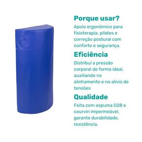 Meia lua ortopédica, almofada meia lua fisioterapia, rolo meia lua pilates, posicionador ortopédico lombar, apoio ergonômico joelhos tornozelos, meia lua Longevitech, rolo ortopédico espuma D28, apoio corporal para exercícios, suporte lombar fisioterapia.